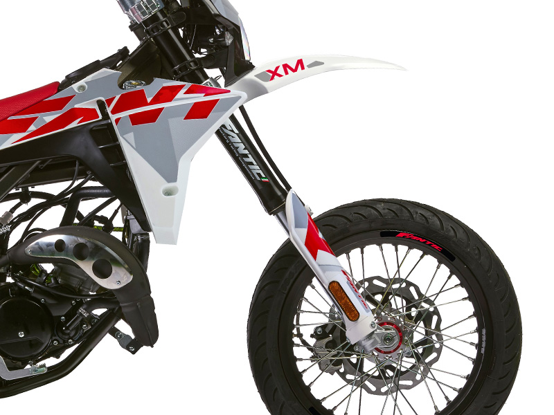 Il motard XM 50 Performance è equipaggiata con forcella a steli rovisciati da 41mm e sospensione posteriore Fantic, forcellone a sezione variabile e leveraggio progressivo. Nuova è anche veste grafica, proposta in due abbinamenti cromatici “White Version” e “Black Version” con linee che richiamano lo stesso Factory Feeling di Fantic Racing.